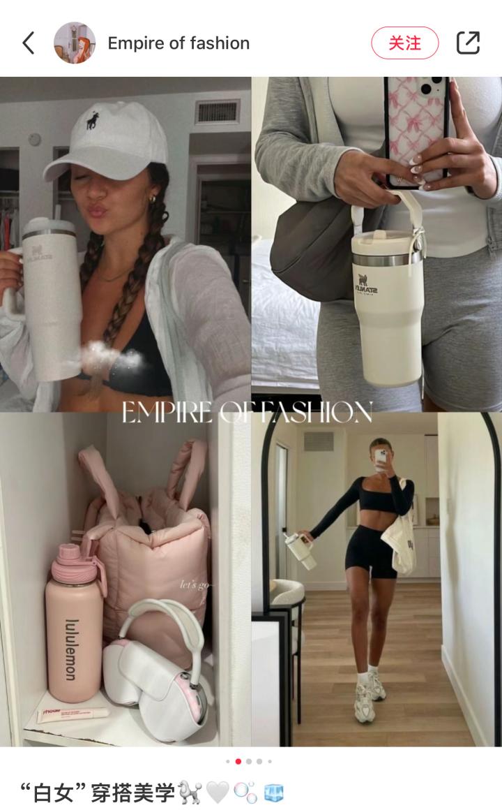 Stanley水杯会是ootd的一环,真正的爱好者会拥有不同颜色的水杯用以搭配每日的服装变化,即使其价格不菲。