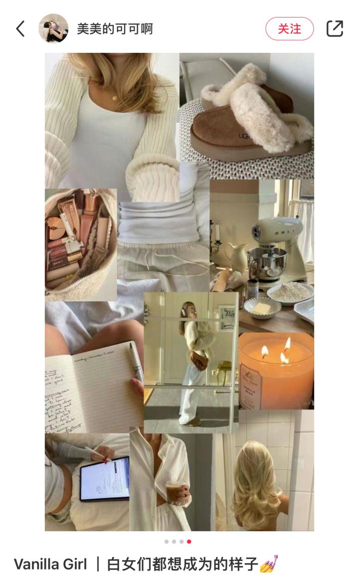 白女形象指向的是有钱有闲的中产生活。成为白女,吃穿用度向白女看齐,就是自证中产新贵的身份。