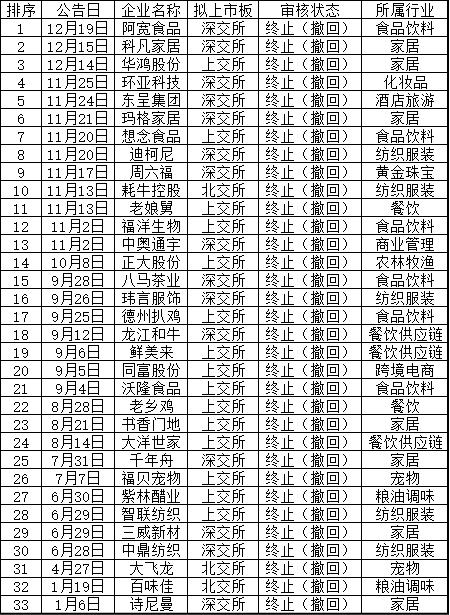 2023年8月27日,证监会发布了《证监会统筹一二级市场平衡优化IPO、再融资监管安排》的公告,明确提出了阶段性收紧IPO节奏、限制破发、破净、持续亏损企业的再融资行为。这一动作市场被称为“827新政”。此后,IPO申请获得交易所受理的数量显著减少,很多消费企业也紧急撤回或者终止上市申请。