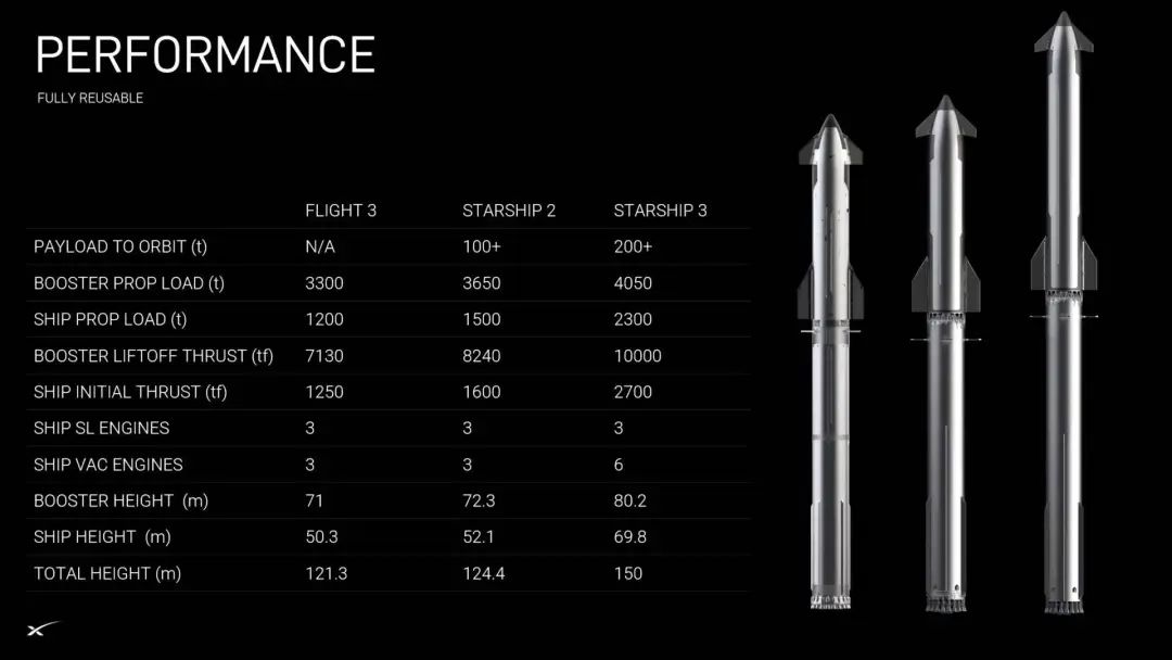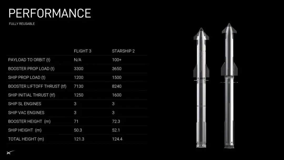 9. 星舰 2 的重量将超过 100 吨,而星舰 3 将超过 200 吨,最终的推力会超过 10000 吨。