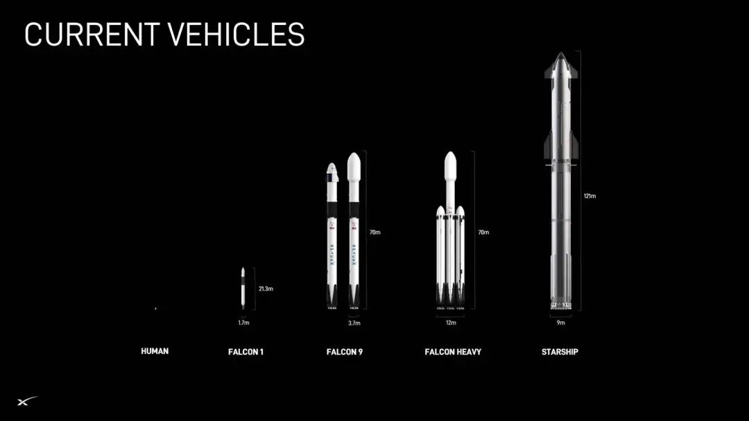 从一个小型火箭到更大的猎鹰 9 号,经过了多次迭代,然后是猎鹰重型火箭,然后是星舰,星舰会变得越来越大。
