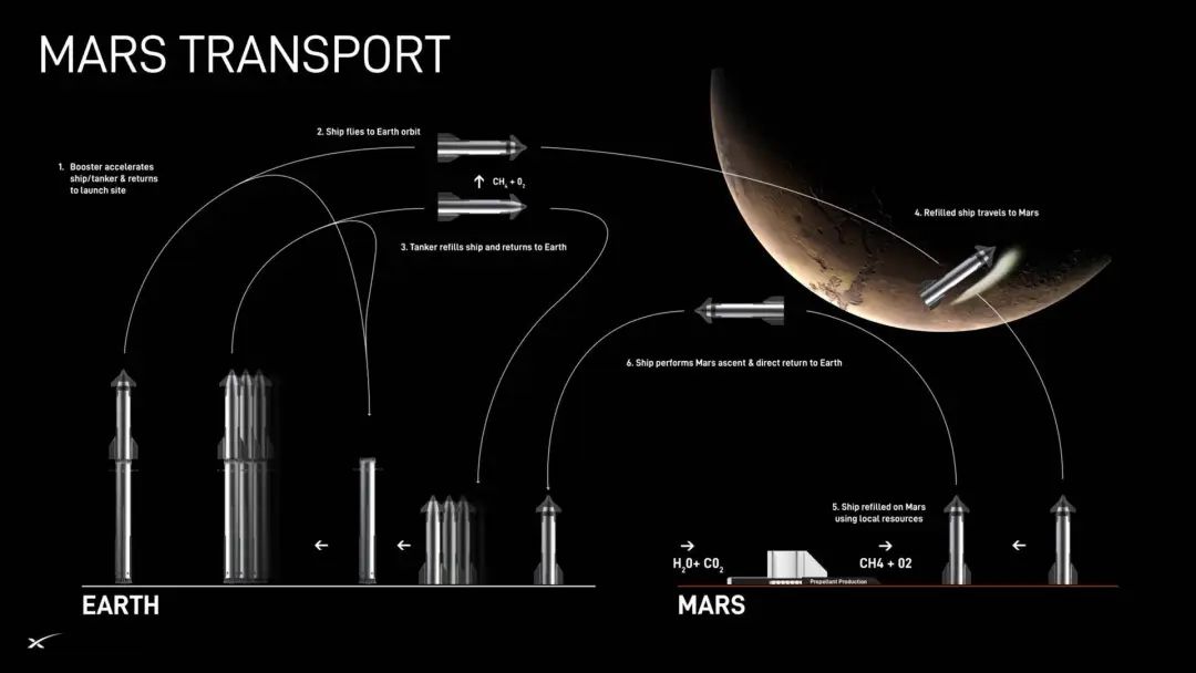 因此,我们可以在火星上建立一个推进剂仓库,将飞船带回地球,并尽快在火星上建立一个自我维持的文明。