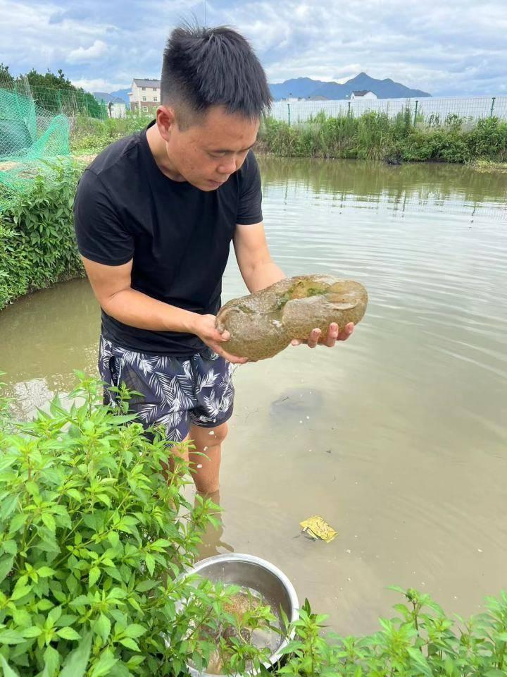 无独有偶,去年在浙江衢州,有人在自家水塘发现了几块褐色的半透明胶质状物体,表层布满“花纹”,且伴有浓浓腥味。