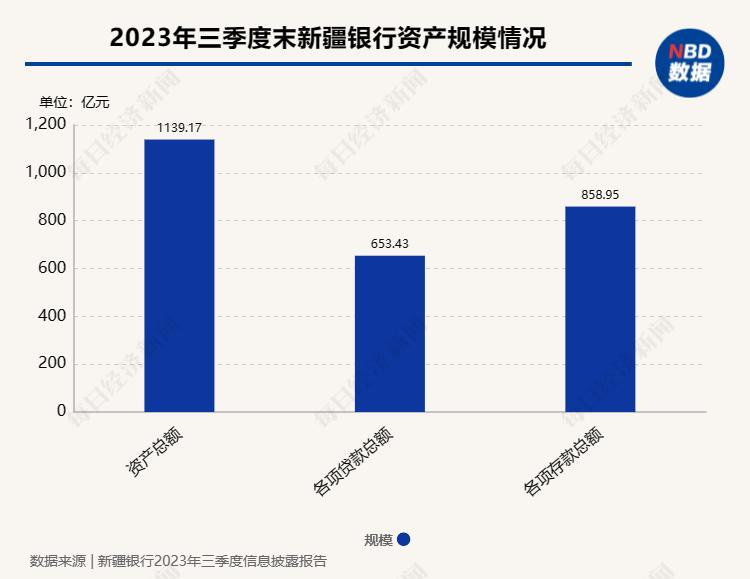 截至2023年9月末,新疆银行资产总额1139.17亿元,负债总额1046.88亿元,各项贷款总额653.43亿元,存款总额858.95亿元。2023年前3季度,新疆银行实现营业收入12.66亿元,实现净利润3.54亿元。