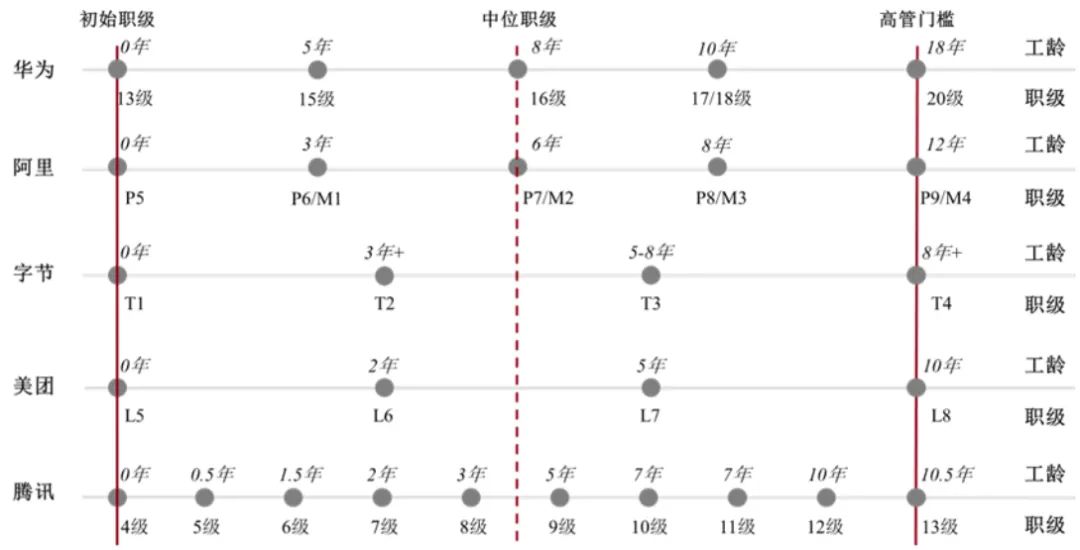 BATM四巨头和华为在职级体系和晋升速度上的对比,图源:《大厂人才:互联网巨头人才管理像素级还原》