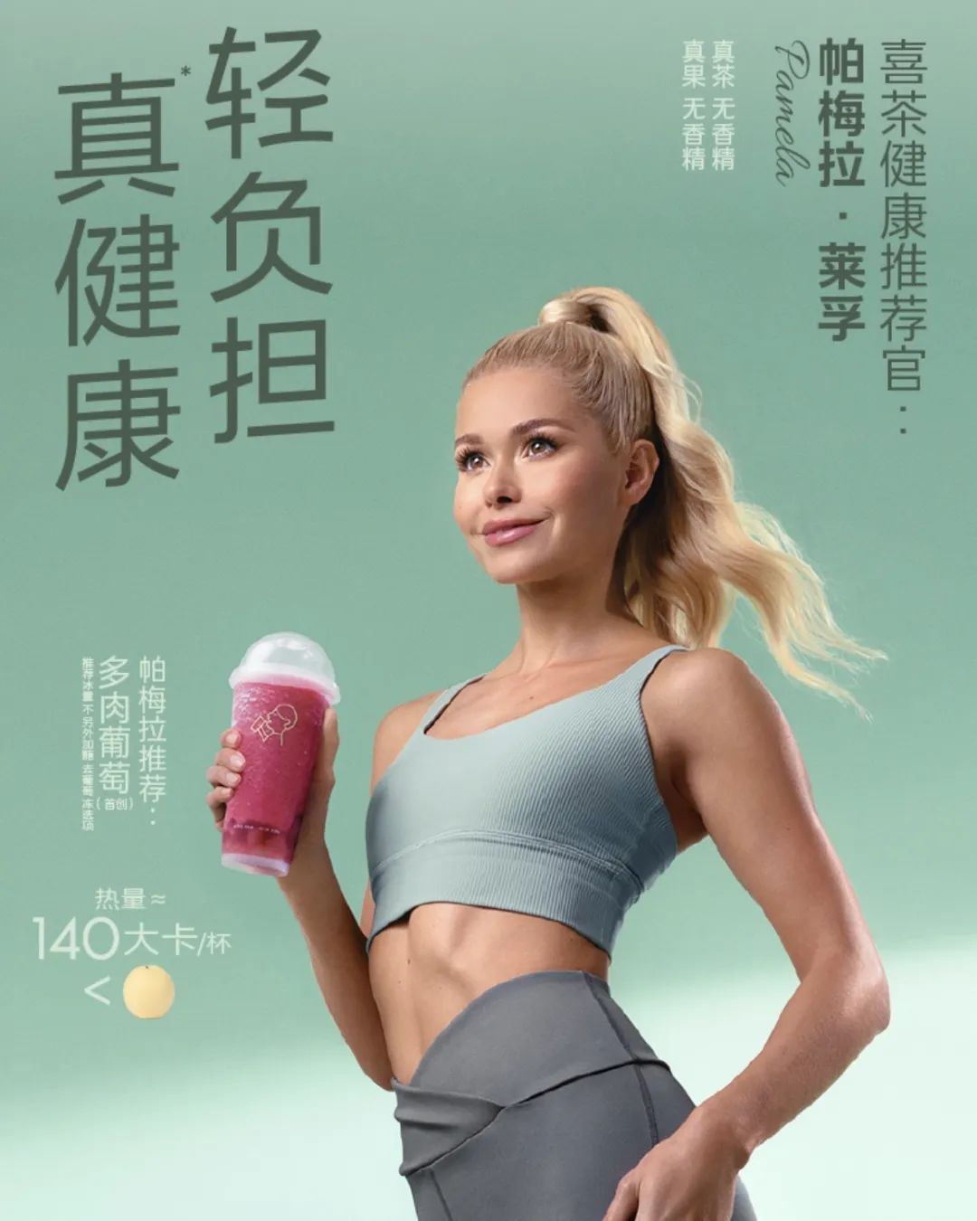 除此之外,帕梅拉作为知名国外健身达人,其热度窗口期早已过去,即便在近两年展开了多个城市的中国行,但其影响力也被其他成长起来的达人博主分散掉了很多。更重要的是,帕梅拉本身最吸睛的内容还是健身操课程、饮食等等,比如帕梅拉同款酸奶碗、果蔬汁等居家自制健康餐在社交平台上异常火爆,所以比起喝一杯帕梅拉推荐的喜茶饮料,可能消费者更想体验的是真正的同款帕梅拉健康餐。
