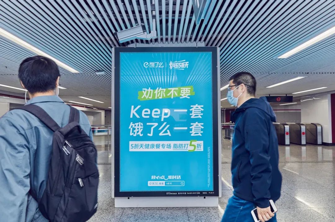 近期饿了么和Keep的CP组就反向也很贴心,它精准的捕捉到了这届年轻人的减肥现状——做一套吃一套,并用“劝你不要Keep一套 饿了么一套”的营销宣传语巧妙地让年轻人的心理破防,很难不将自己代入其中。特别是Keep与饿了么在地铁内投放的几组对话框广告,让减肥人深深共鸣、又狠狠被暗示到,继而被活动期间“脂肪打5折”这句爽言爽语戳中,让用户有兴趣加入线上打卡指定课程获得运动奖章的活动。