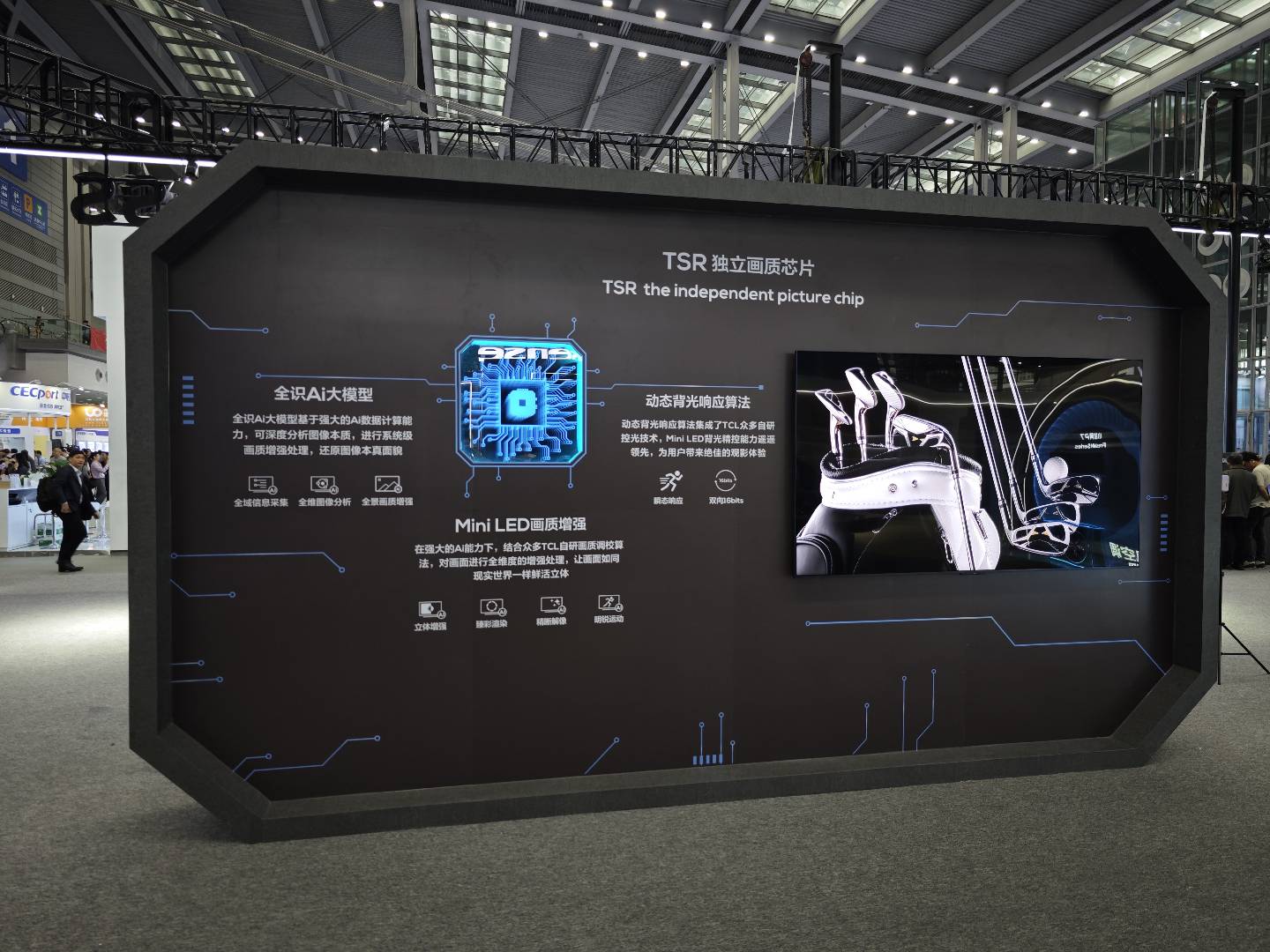 例如TCL在展会上展出的TSR独立画质芯片,它不仅是一颗由TCL自研的Mini LED画质增强芯片,在TCL全识AI大模型的加持下,它还拥有了领先行业的AI能力,并且可通过全域信息采集、全维图像分析与全景画质增强三大步骤,对画质进行系统级处理。