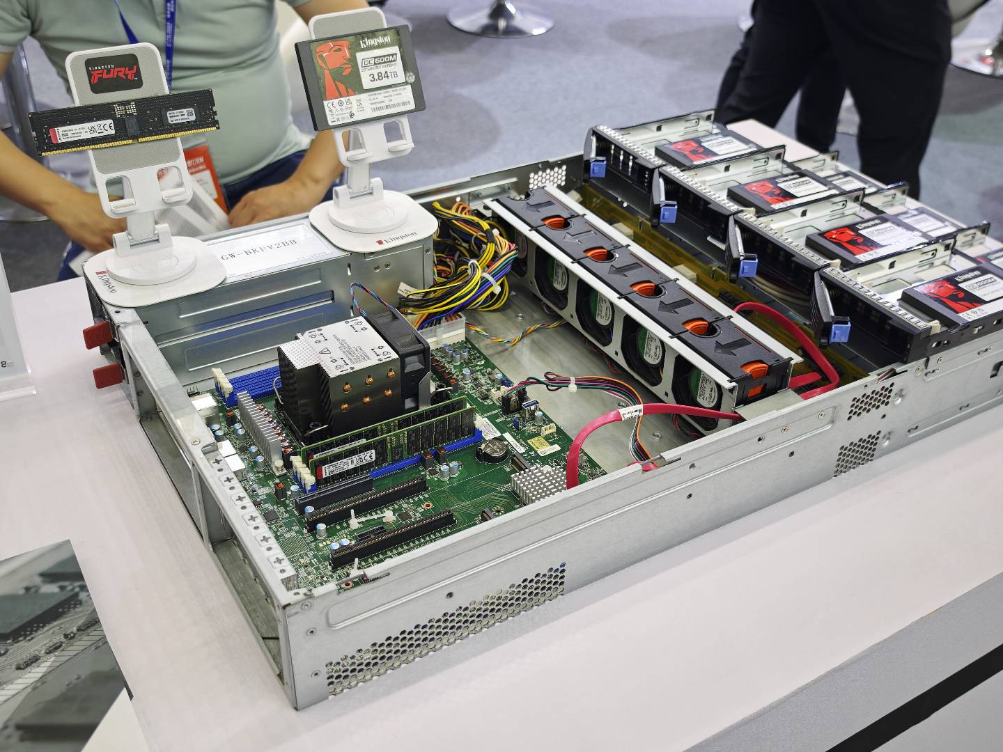 其中比较亮眼的,应该是这个2U小型存储服务器,这款产品基于Xeon® Gold 5418Y打造,整机最高可配备8*金士顿SEDC600M SATA固态,实现高达30TB高速存储服务器的构建。