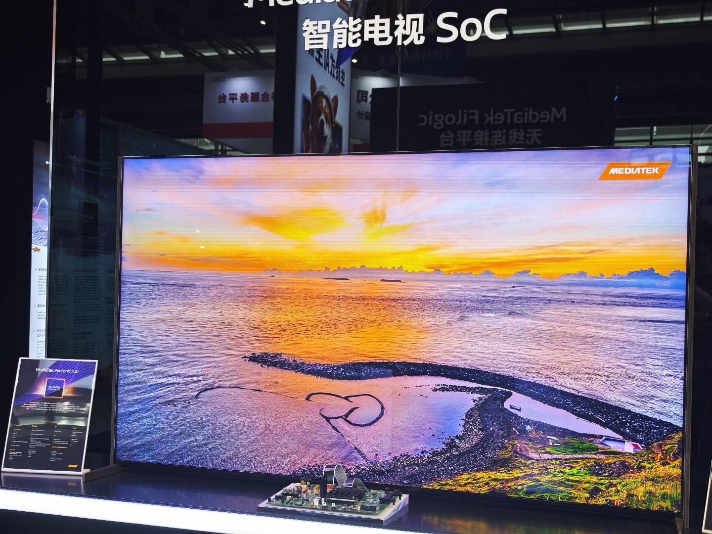 联发科还展示了搭载MediaTek Pentonic 700芯片的智能电视,小雷在观展时了解到,该SoC不仅支持高达4K 120Hz HDR,还集成4K 120Hz运动补偿和强劲的AI引擎,可以自动在前景和后景间通过不同的锐度、对比度调节加强画面效果。