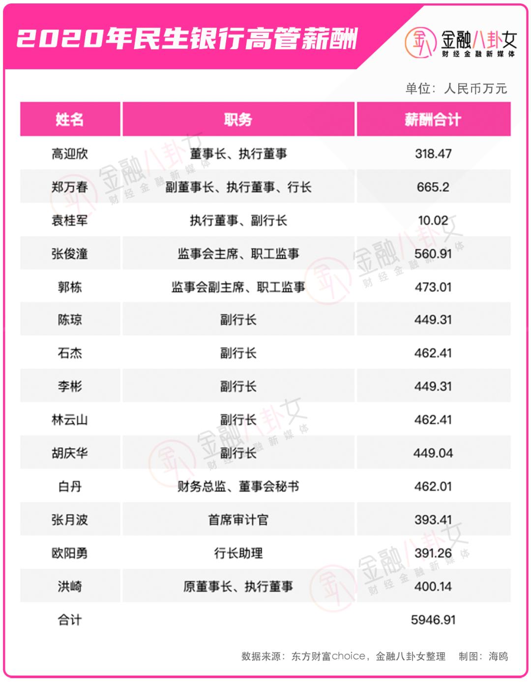 后面这几年,不光是董事长和总经理,民生银行的高管各个都是高薪,史玉柱还在微博上喷过,说以董事长为首的管理层的收入,必须与公司市值挂钩。他没打出来的文字是:这股价连续跌了五年,怎么你们还能人人四百多万的年薪?