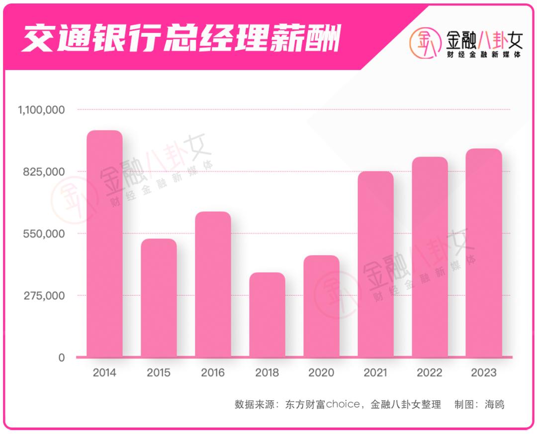 第四名的交通银行,总经理年薪的低谷是2018年,只拿了不到40万,近10年内平均水平在70.7万左右,去年拿了92.7万,按照近三年的小涨趋势,未来重回2014年的百万年薪还是有希望的。