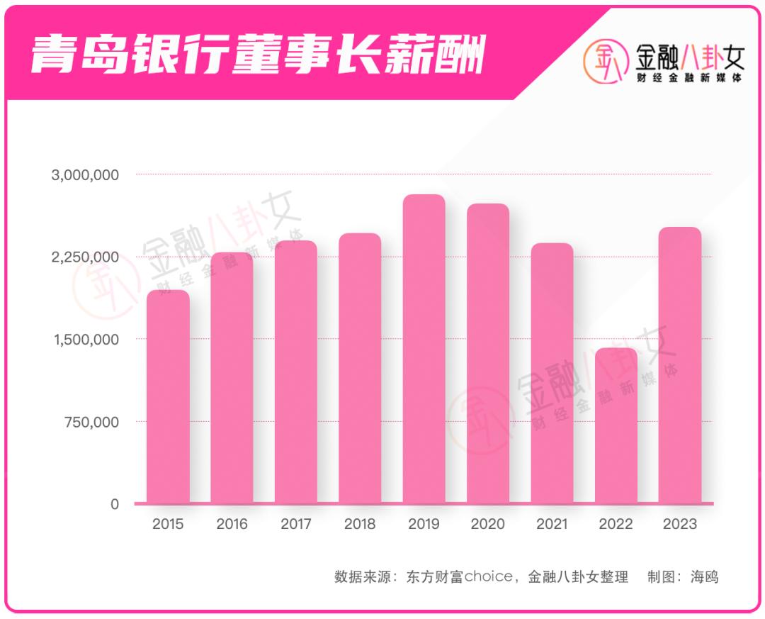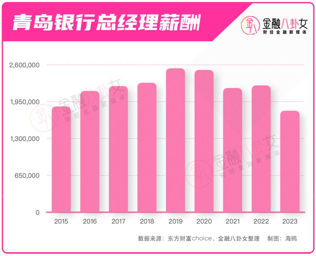 第三名的青岛银行,总经理薪酬的高峰就是2019年,在那之前一路上涨,在那之后稳步下滑,平均来看就是二百来万的水平。