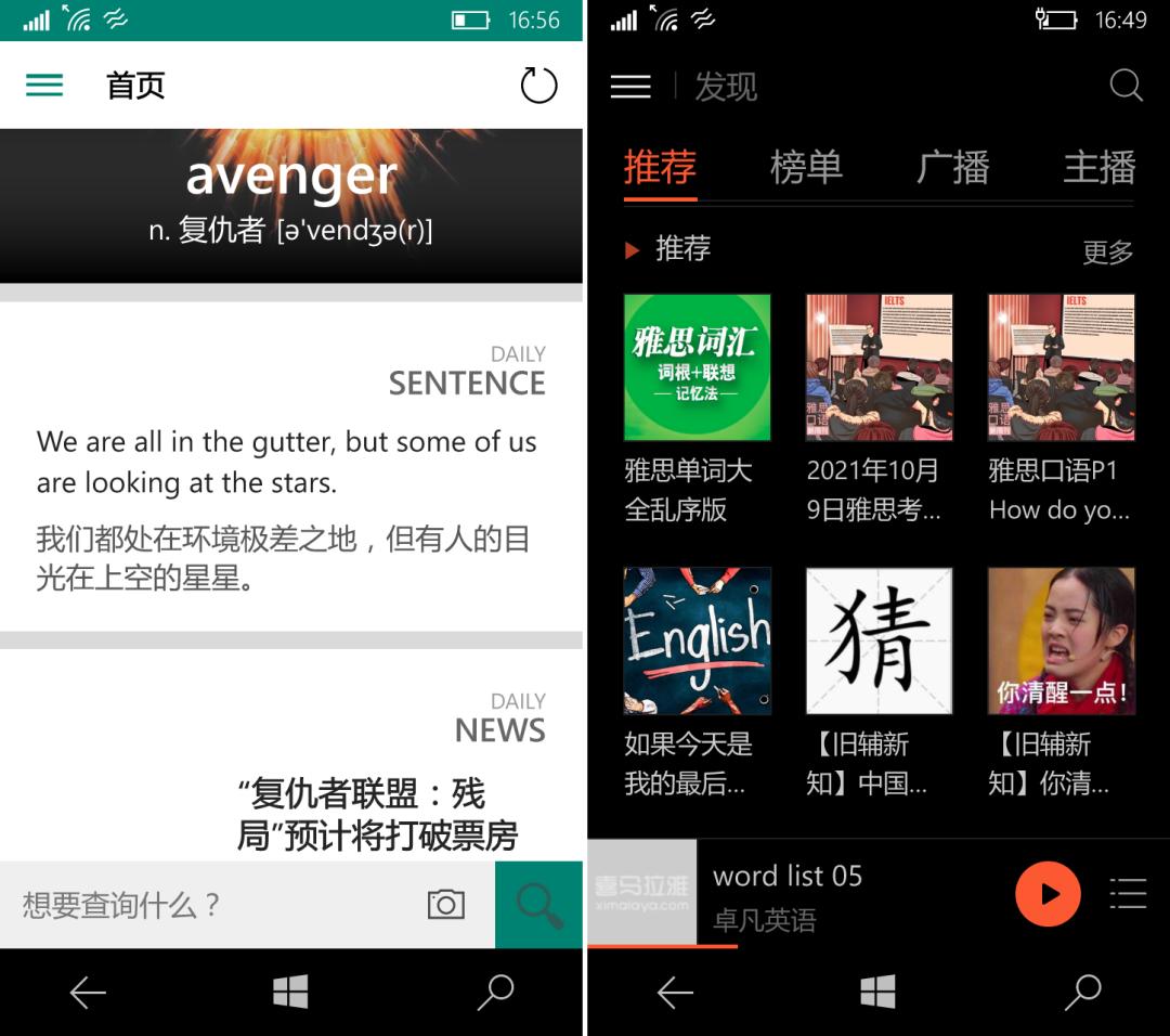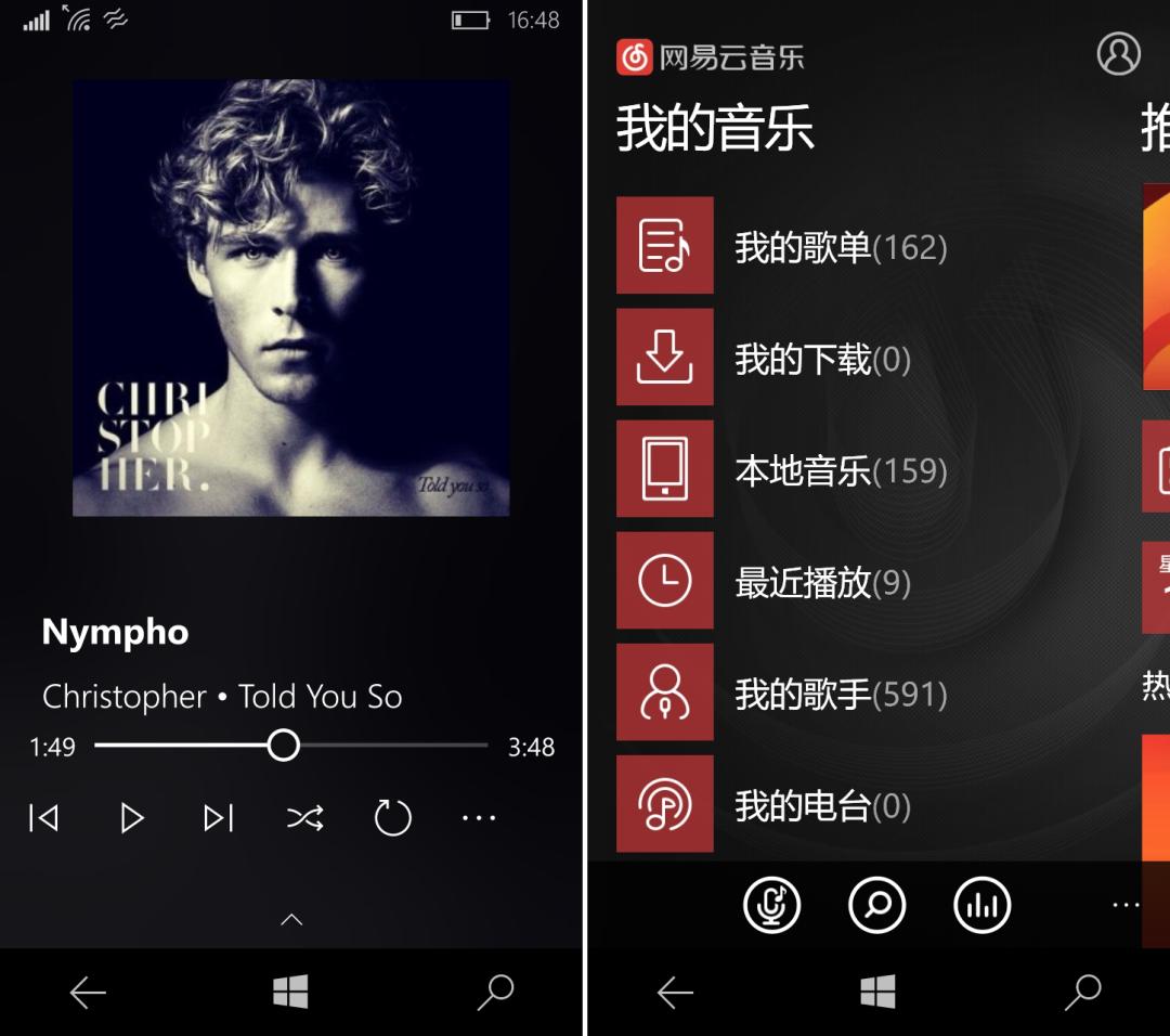 Word Mobile、OneNote Mobile、必应词典版都还算流畅,喜马拉雅 FM 可用;酷我音乐同。网易云音乐的两个版本都还能用:虽然网易已下架过一次 UWP 版的。好在Windows 10 Mobile 从封闭式转向开放,允许用户旁加载其他来源的 UWP 安装包,使用过程和 Android 的 APK 格式安装包几乎一样。