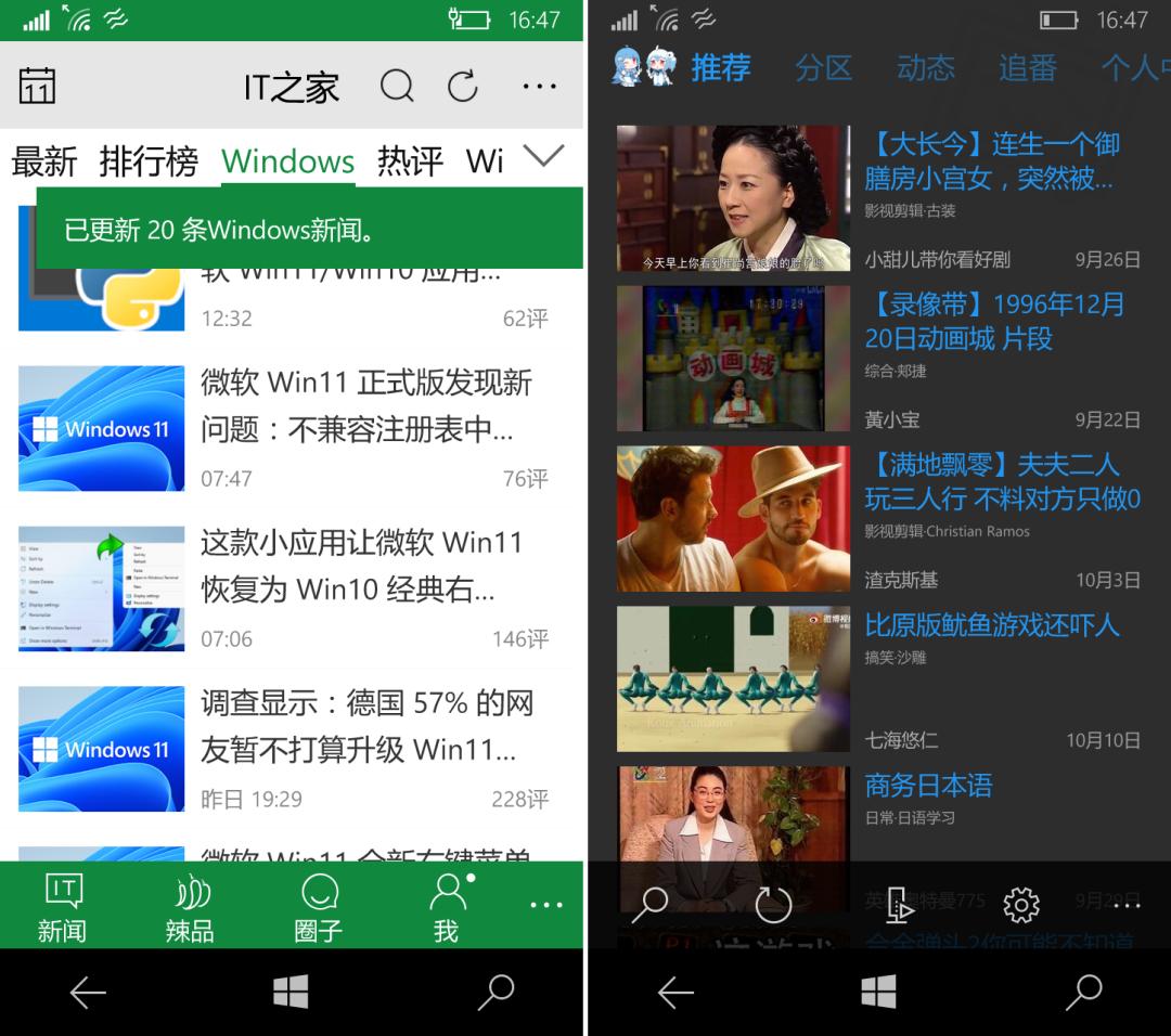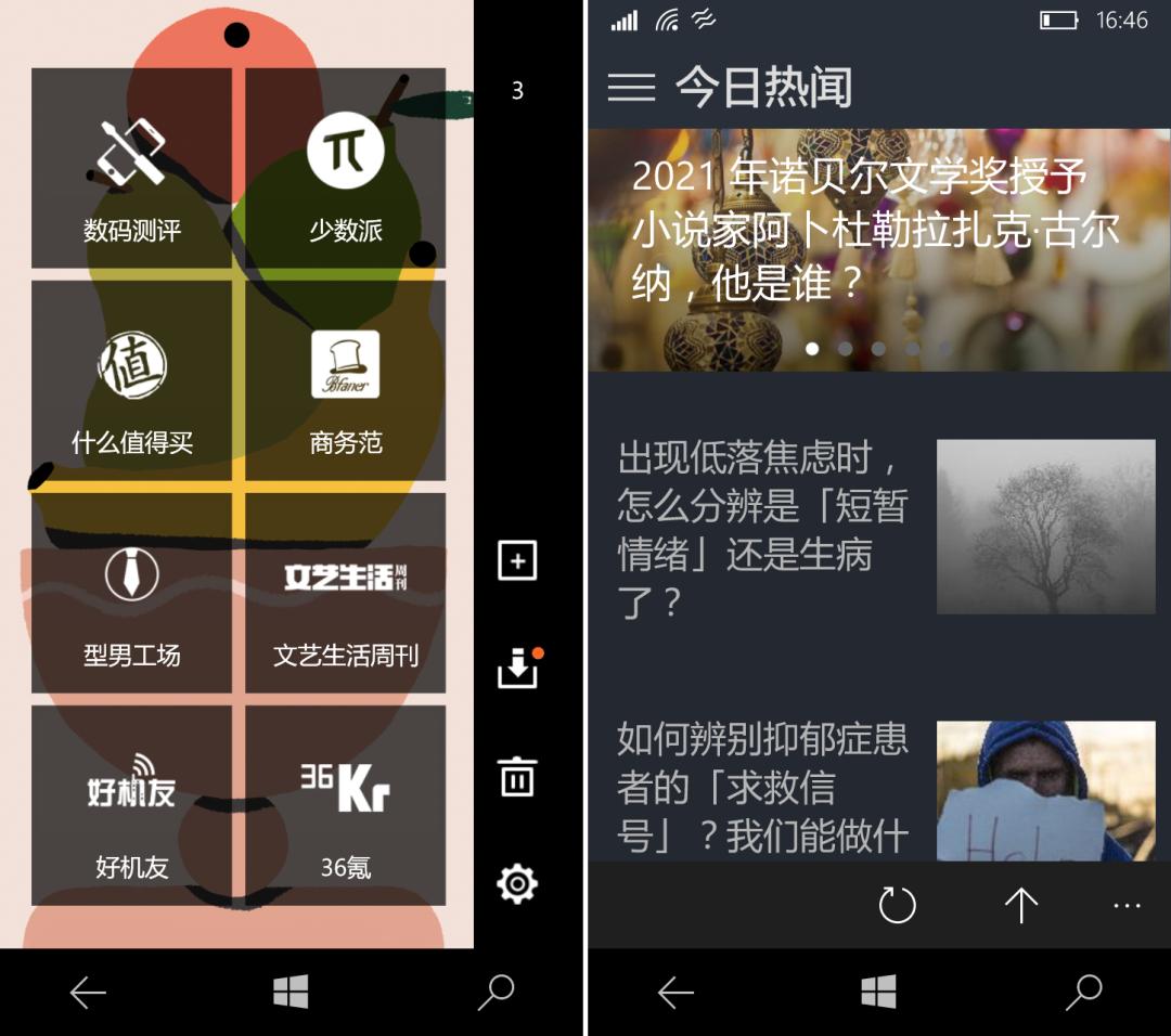 MSN 资讯停止了大陆地区的服务,其他地区切换后可用;资讯类软件里,IT 之家还在更新,这在如今算是很难得。Zaker 聚合阅读在其他平台也保留着磁贴设计,Windows 10 Mobile 平台上自然表现得更加和谐。哔哩哔哩 UWP 客户端可以正常登录。爱奇艺最新版并未对 Mobile 版做出 UI 优化,好处是它没有任何广告。知乎日报也可用。