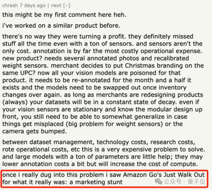 以亚马逊的“Just walk out”为例,有人就分析了这种模式注定不可行,“就是个营销噱头”。