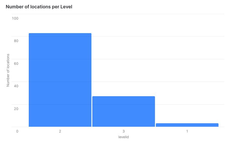 从ev_table组中按“levelid”选择计数(“locationtitle”)、“ levelid”