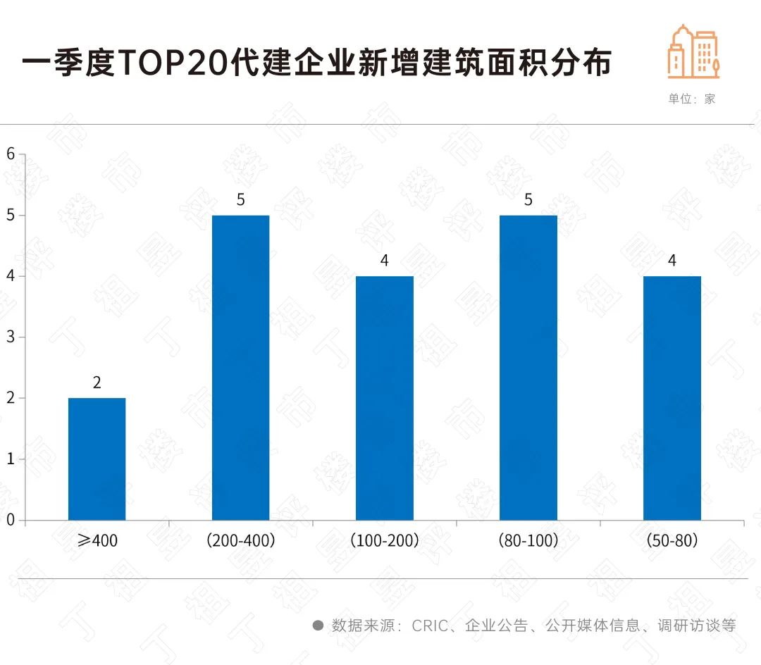 CRIC数据显示,2024年一季度,代建新增规模TOP20企业新增签约面积已接近2023年全年新增签约面积的三成。