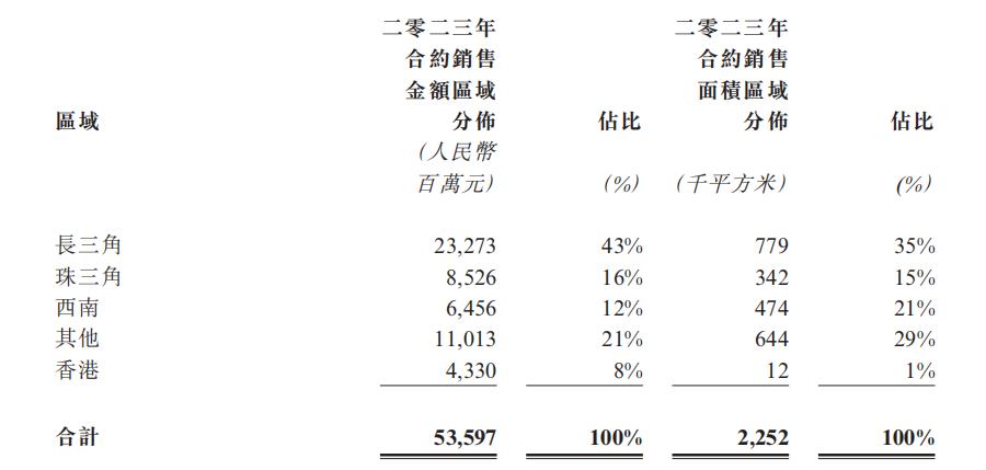 截至2023年底,该集团持有权益土储在长三角和大湾区的占比达48%,同比提升5个百分点;在一线城市占比达到26%,同比提升4个百分点。