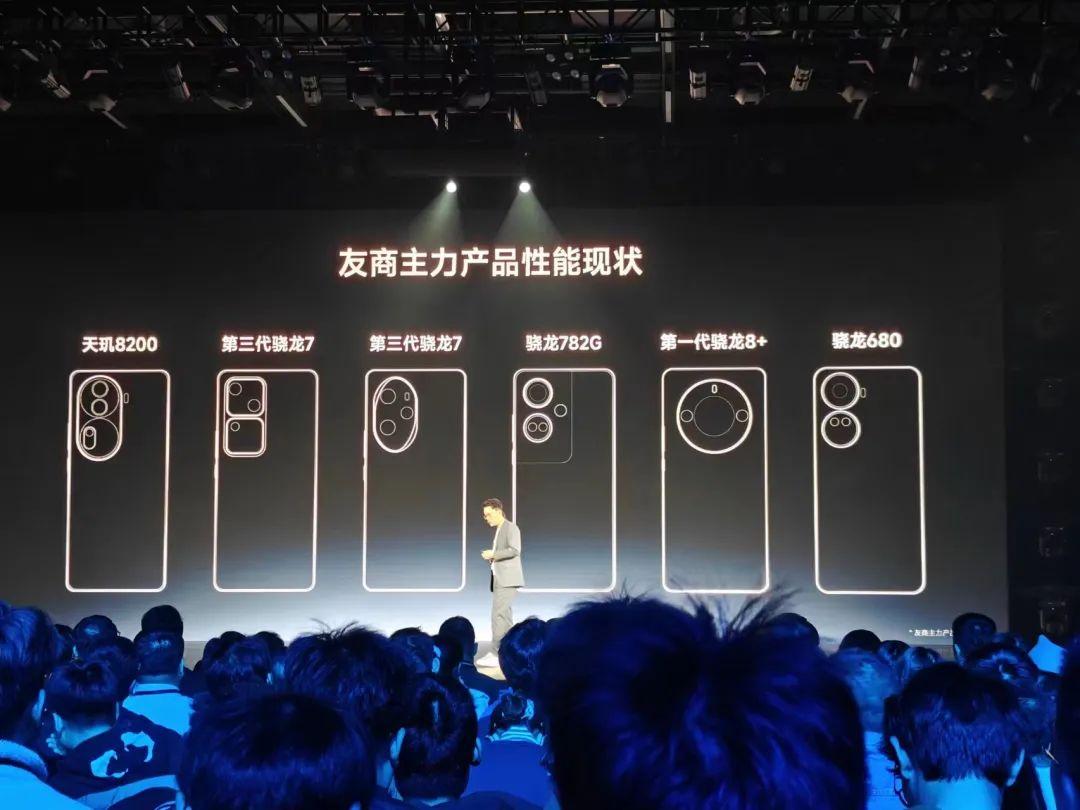 不过,Redmi发布会当晚也出现了一个意外。王腾在芯片对比环节,放了一张各手机品牌型号的线稿图,原意是想凸显Turbo3用了更好的芯片,结果PPT上把荣耀100Pro放上去做了对比,而上面标注的芯片型号却是第三代骁龙7。实际上,这款手机用的是骁龙8gen2。