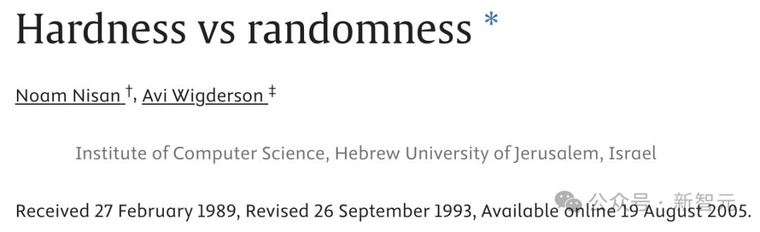 - 「Hardness vs. Randomness」(与Noam Nisan合著)