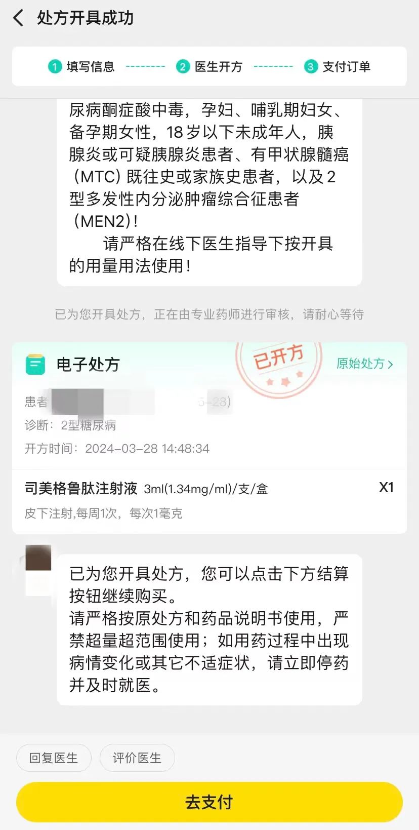 詹军豪表示,根据相关规定,处方药的销售应当遵循医生的处方,确保药物使用的合理性和安全性。然而,目前互联网医药平台在销售司美格鲁肽时,存在处方开具不规范、审核不严格等问题,这可能导致药物的滥用和误用,给消费者的健康带来潜在风险。