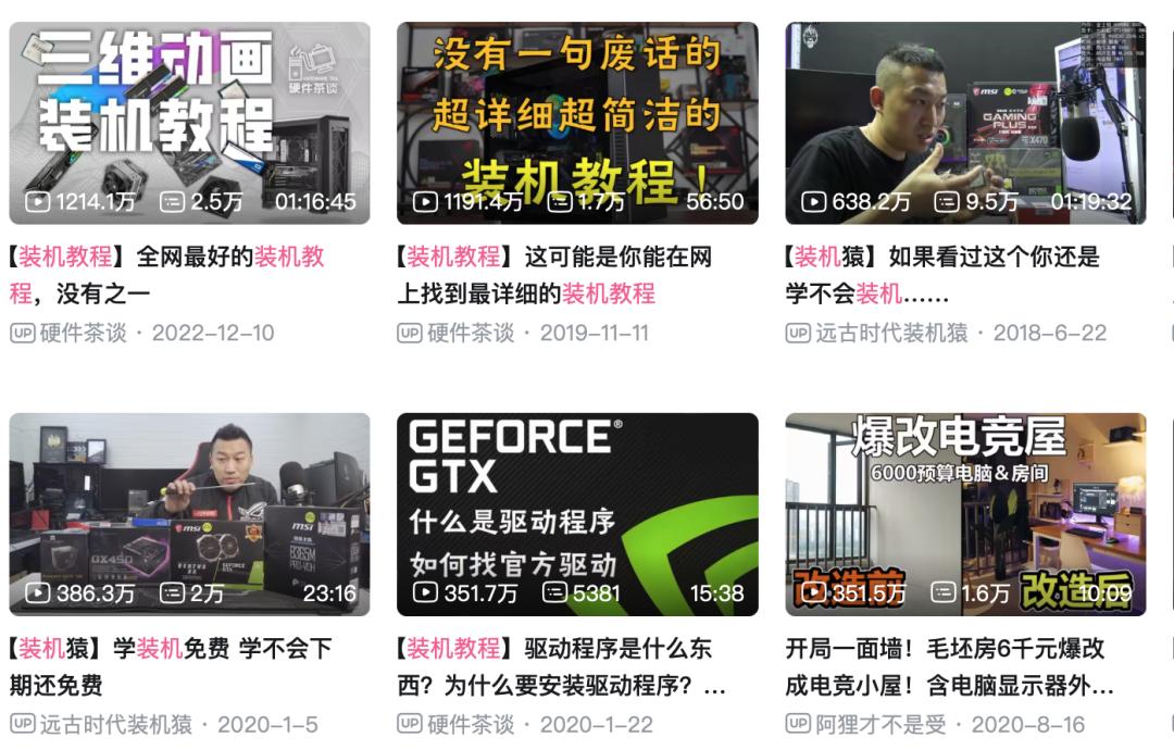 在 B 站上,装机教程视频,经常能拿下数百万的播放,是很多粉丝非常爱看的视频内容。