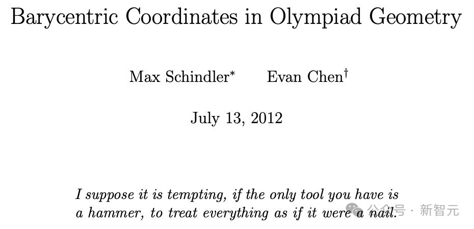 国际数学奥林匹克中,这些方法被参赛者戏称为「三角破解」和「重心破解」。
