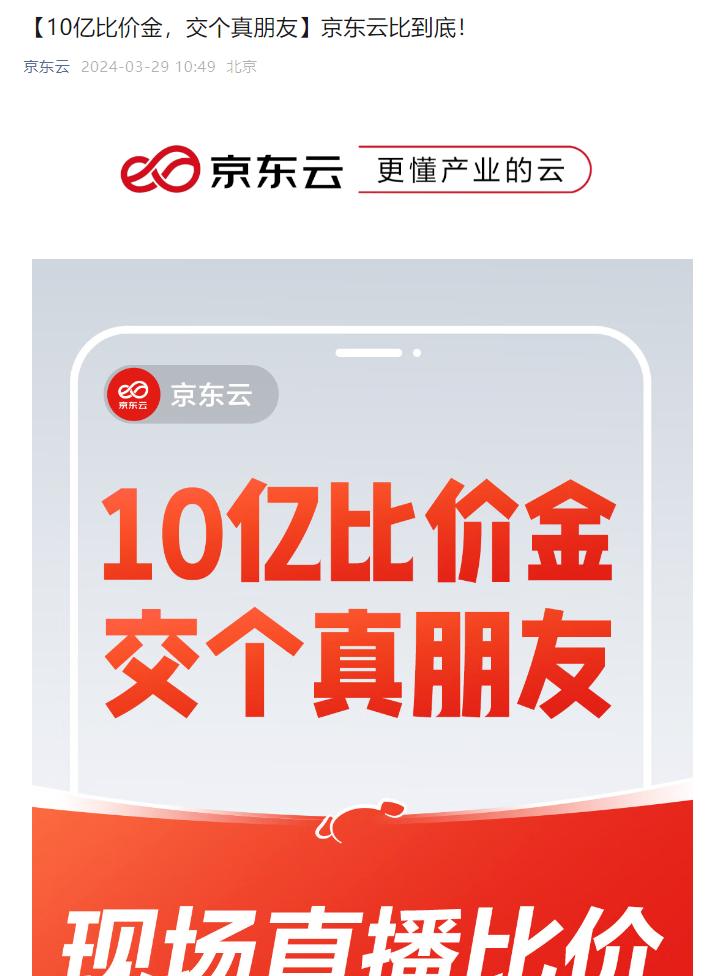 为了配合云业务动态调整价格的机制,京东掏出10亿比价金设立了全网比价的“春风计划”,比价对象同样以阿里云为主。