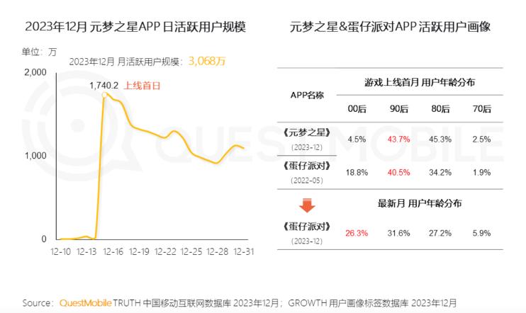 更加有代表性的一组数据是,从用户结构来看,圆梦之星00后居然只有4.5%,而蛋仔派已经去到了26.3%。