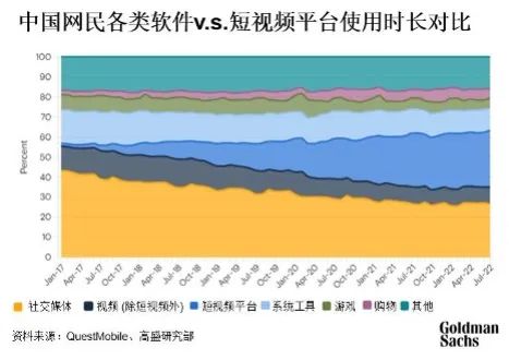 高盛研究部预计到2025年,抖音、快手和微信视频号将分别占据50%/30%/20%的时长份额。