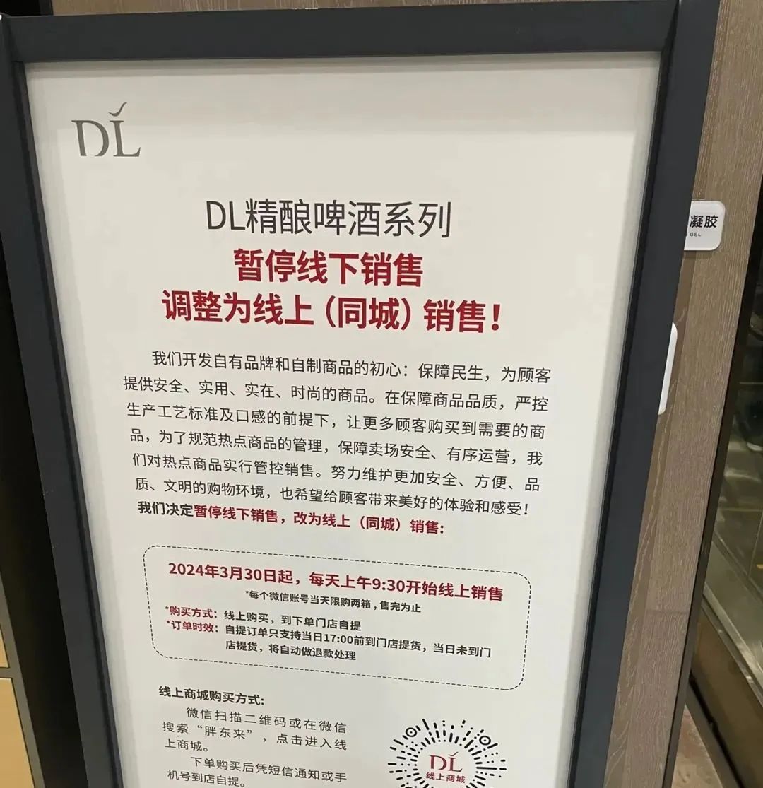 今年以来,为了解决代购问题,胖东来对不少爆款商品进行了限购、排号、实名认证等等。有个代购表示,几个月前还能一次购买上千箱精酿小麦啤酒,“工作人员都会帮着装货”,后来变成了每个账号限购2箱,还需要线上提前预约。