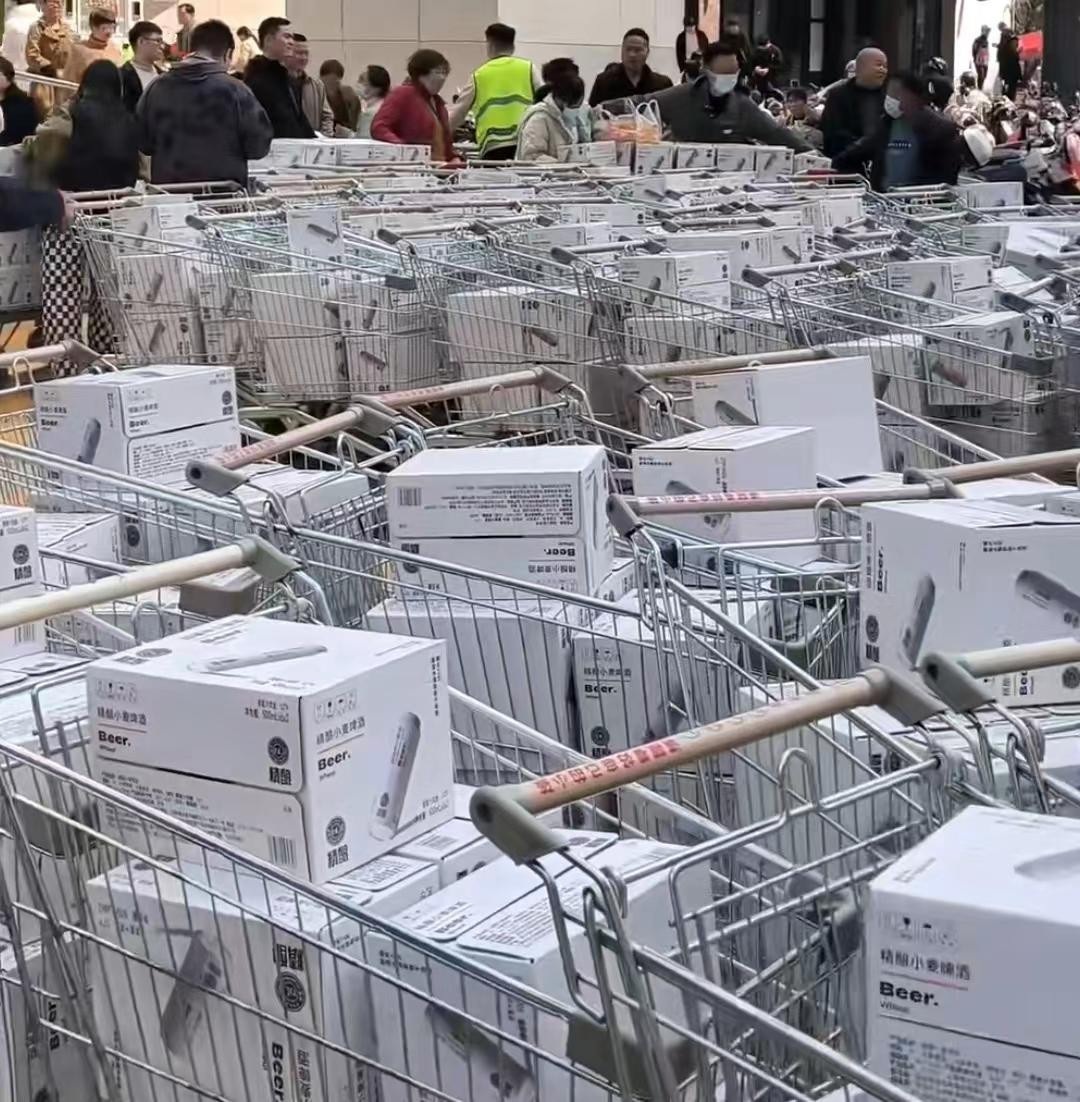 比如东来自营精酿啤酒,到货后没几分钟,代购们就会迅速装满几辆购物车,扬长而去。