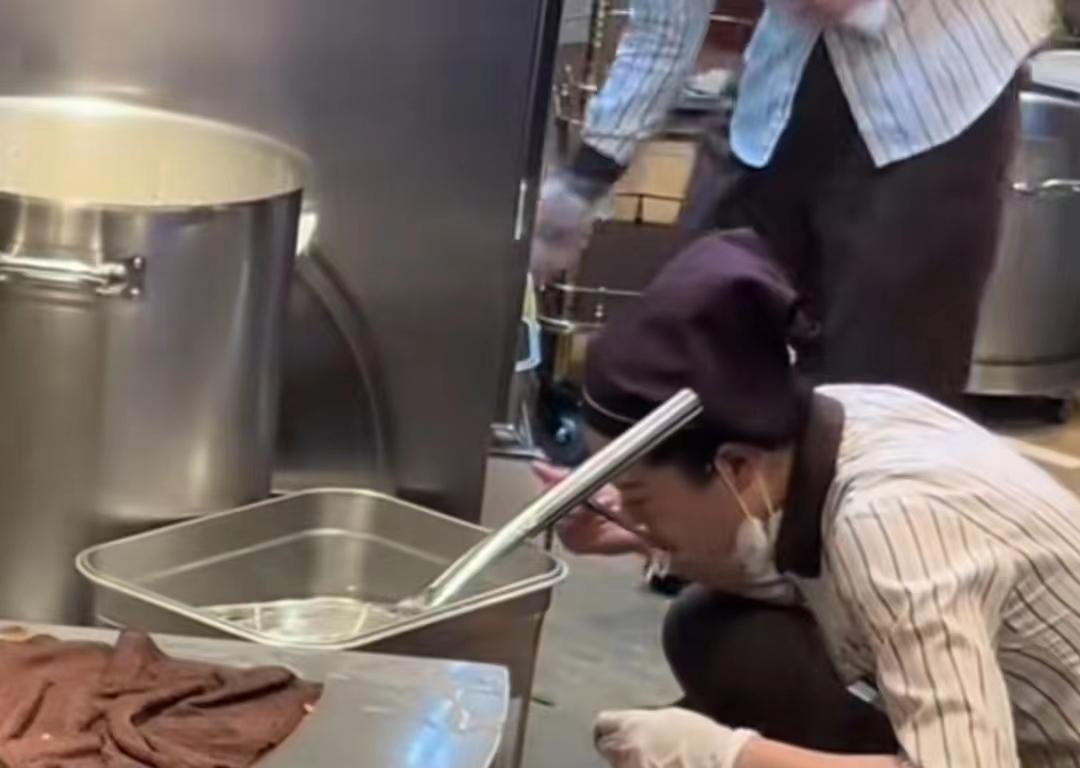 一名员工在煮员工餐时,尝了一根面,被人拍下发到网上后,差点被开除;