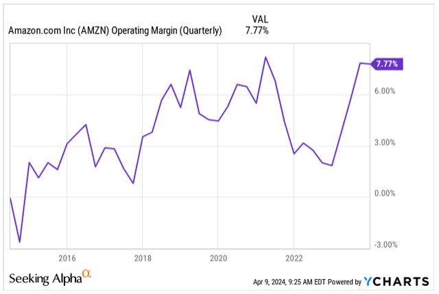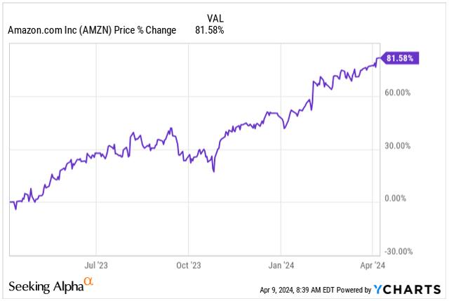 虽然我们不应该期望过去十年的回报率与过去十年类似,但即使在短短12个月内实现了82%的投资回报率之后,该公司的定价仍然具有吸引力,预计2024年将非常成功,原因是服务客户的成本降低,AWS由于人工智能集成和广告业务的持续增长,增长重新加速。