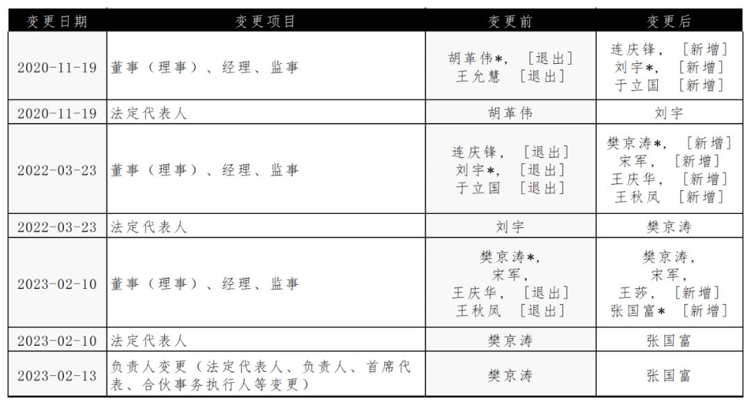 2022年11月,王秋凤因个人原因离职。同月,张国富、高建军、高健被任命为北汽蓝谷副经理;2023年1月,张国富从樊京涛手中接下极狐汽车的法人代表,而这已是极狐自2020年以来第三次法人变更,相当于每年极狐高层都在变动。