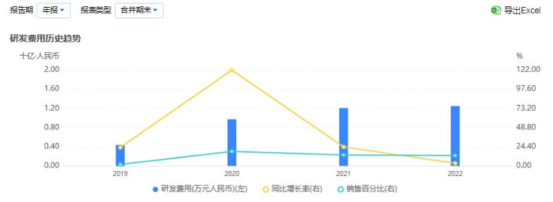这在“传承”北汽“拿来主义”的同时,也奠定后续极狐的“发展基调”。在其他新能源车企动辄几十亿甚至百亿投入研发前,北汽蓝谷2021年至2022年的研发费用分别为12.08亿元和12.89亿元,增速分别为24.24%和3.38%,增速逐渐放缓。