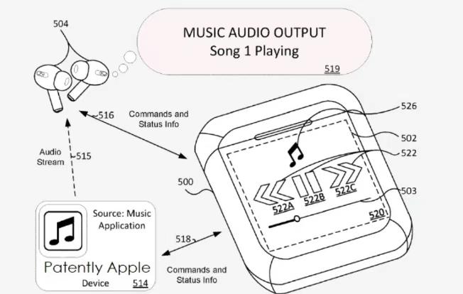 作为电子市场新的“流量密码”,屏幕耳机从背面看平平无奇,翻过来就能发现另有玄机。一块大拇指一样大小的屏幕,不仅可以触屏切歌,调节音量,还能在上面看歌词。网上流传着一张苹果AirPods的专利图,图上显示,充电壳上正是加了一块像Apple Watch一样的触屏屏幕。
