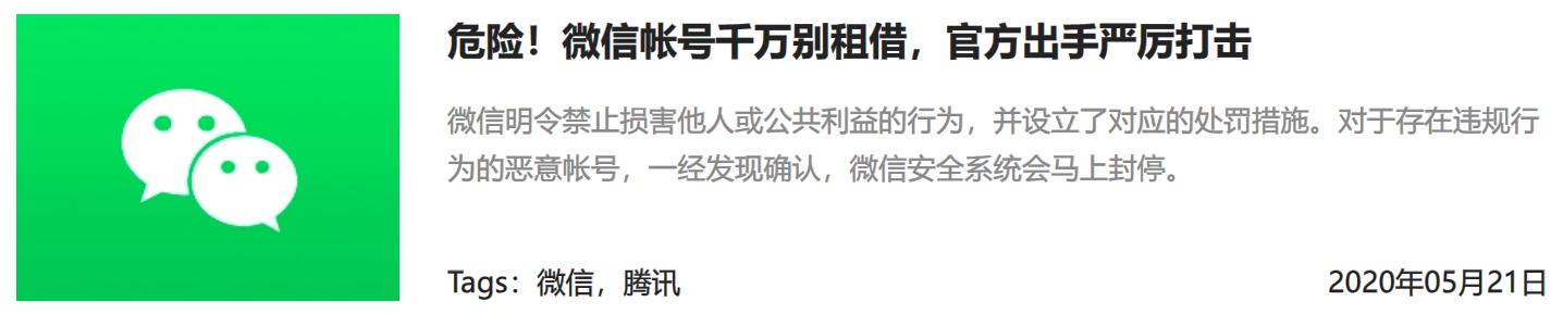 当时微信一再告诫广大用户,不要因为贪图小利就把自己的微信号租售出去。