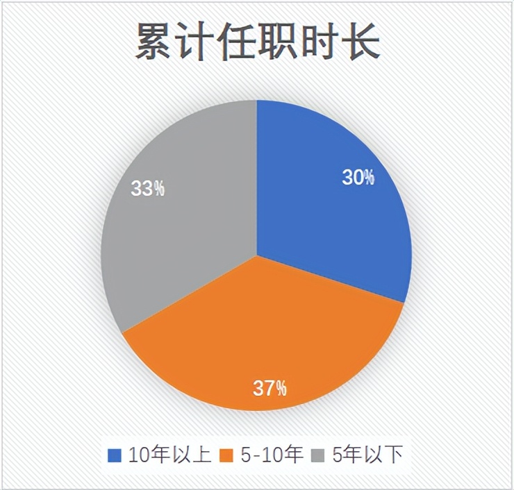 统计显示,从性别上看,这30人中有5位女性基金经理,占比1/6,她们分别是:易方达基金的余海燕、王晓晨,工银瑞信的刘伟琳,广发基金的温秀娟、宋倩倩。除了宋倩倩累计任职时间不足4年,其他人都是任职9年以上巾帼名将,她们多从事固收投资,且业绩相对稳定。