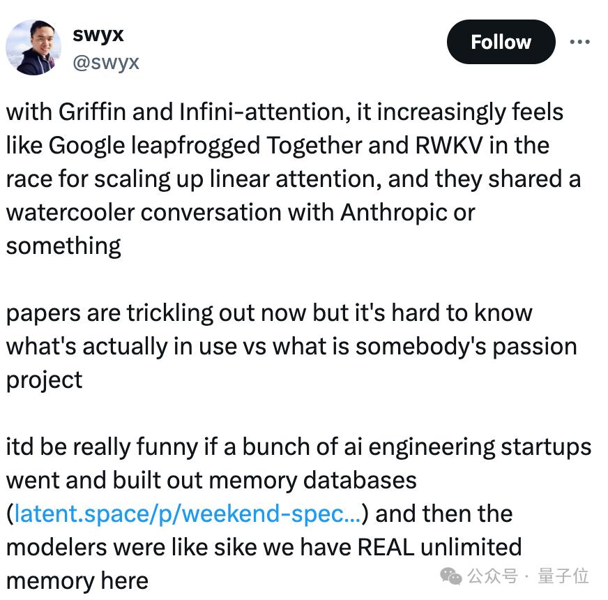 不过想象一下,如果有一些初创公司专门做内存数据库,但是模型能已经能实现无限内存了,这可真是太有趣了。