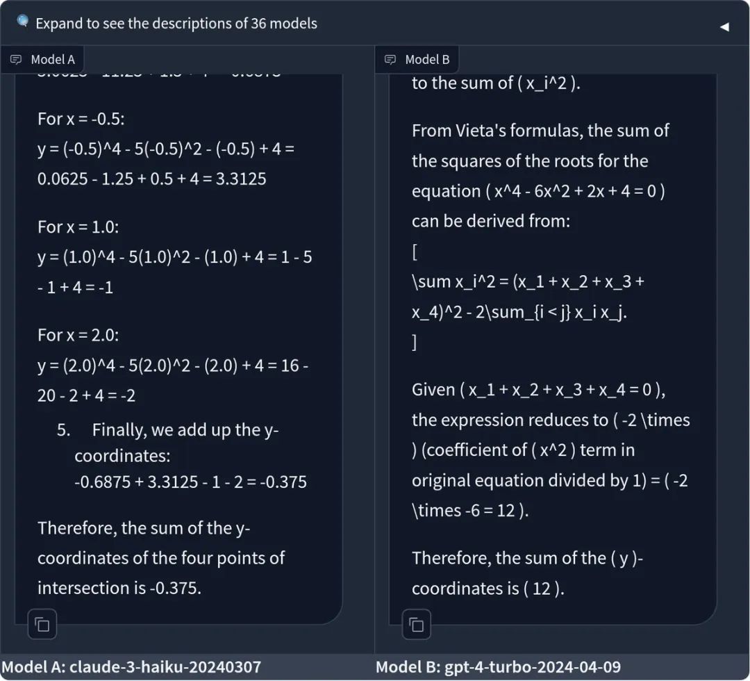 比如“求y=x^4-5x^2-x+4和y=x^2-3x交点的y坐标之和。”只有最新版GPT-4 Turbo能测出来。