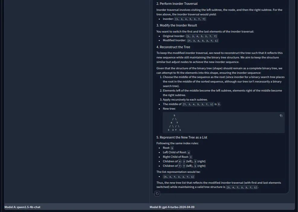 还有在修改二叉树问题上,GPT-4 Turbo不仅回答正确,而且过程清晰完整。