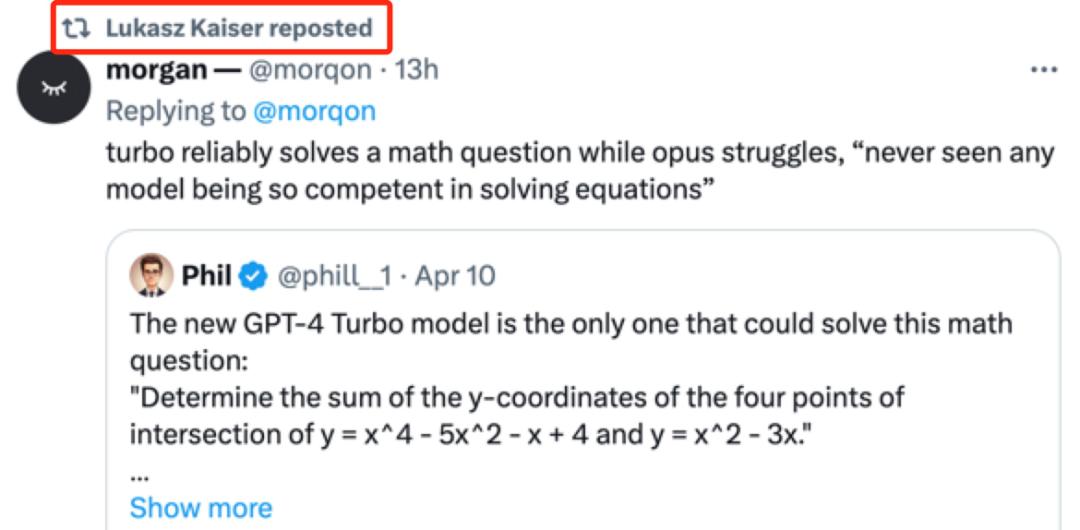 这条推特被公开承认自己参与过Q*的Lukasz Kaiser转发。