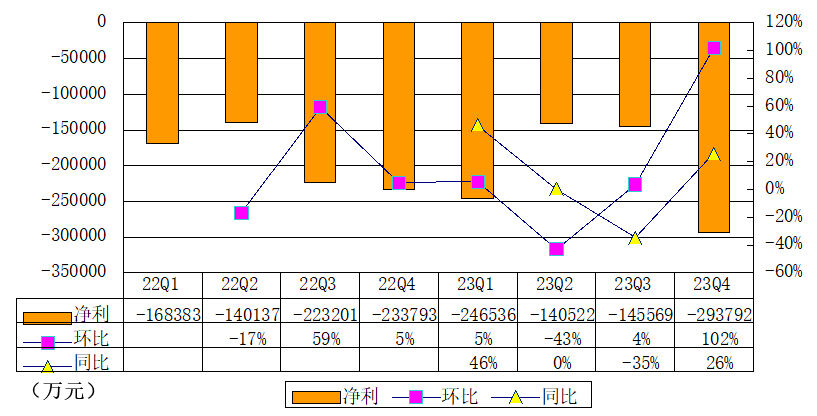 极氪2023年第四季度净亏损为29.4亿元,较上年同期的净亏损22.5亿元增长26%,较上一季度的净亏损14.6亿元增长102%。