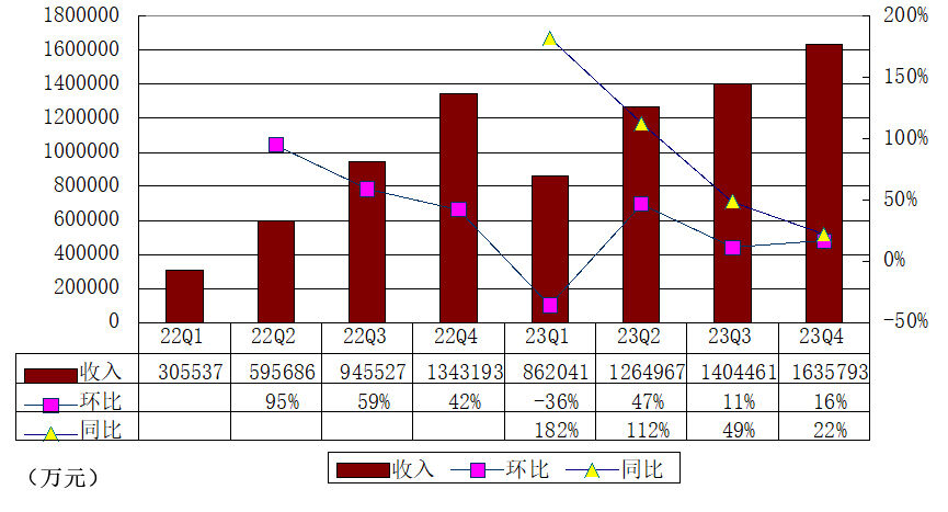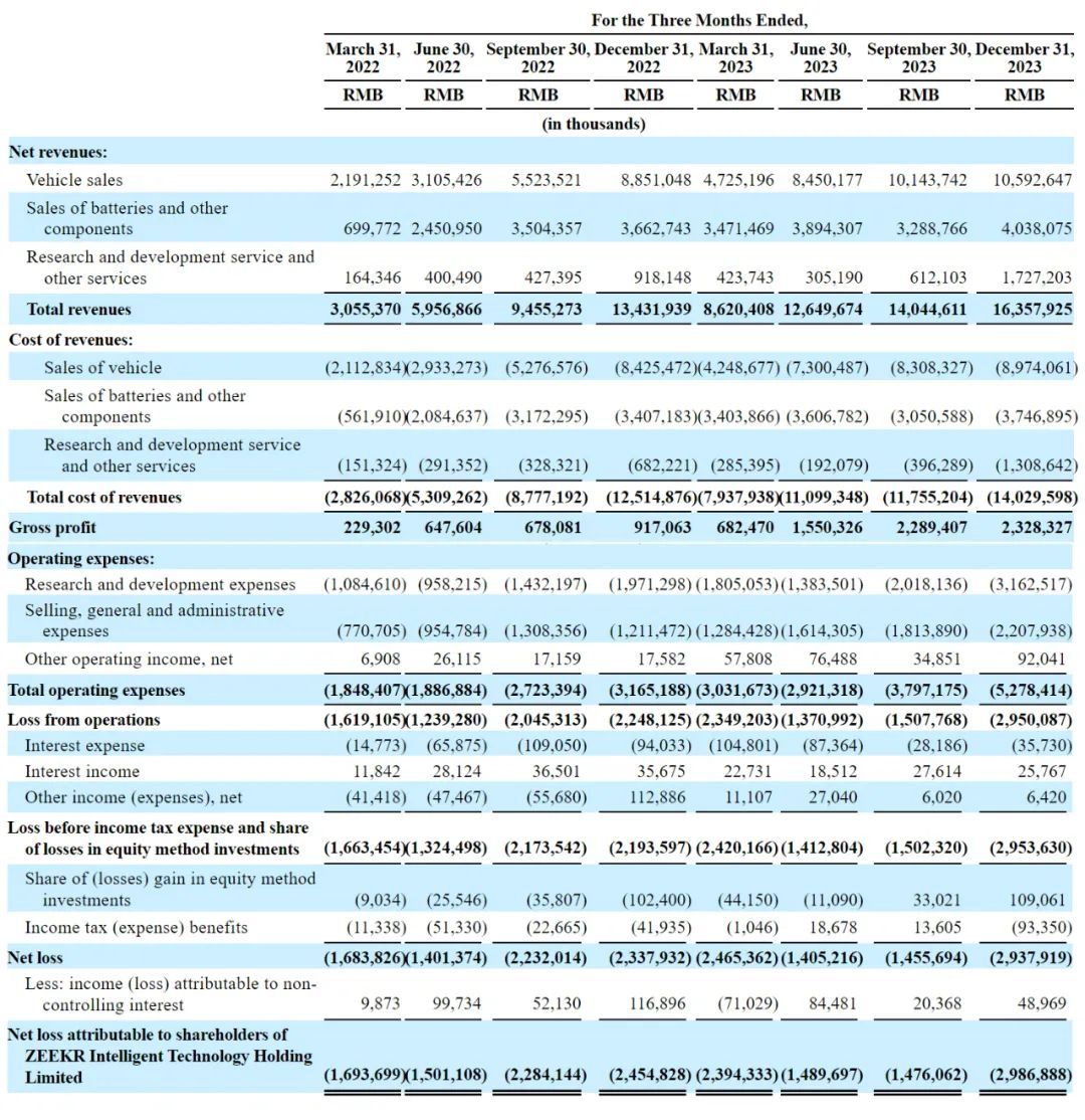 其中,极氪2023年第四季度营收为163.6亿元,较上年同期的134亿元增长22%,较上一季度的140亿元增长16%。