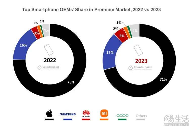 在高端市场苹果有着绝对的优势,安卓反而很难形成规模效应