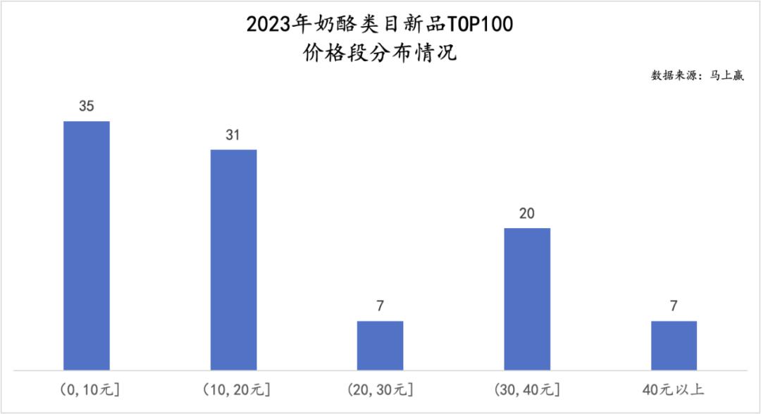 观察TOP100新品情况,20元及以下产品也占了大多数,共61款;其次是30-40元区间,共20款。奶酪在国内依旧属于新生品类,相对较低的价格,对于拉新而言,门槛更低。