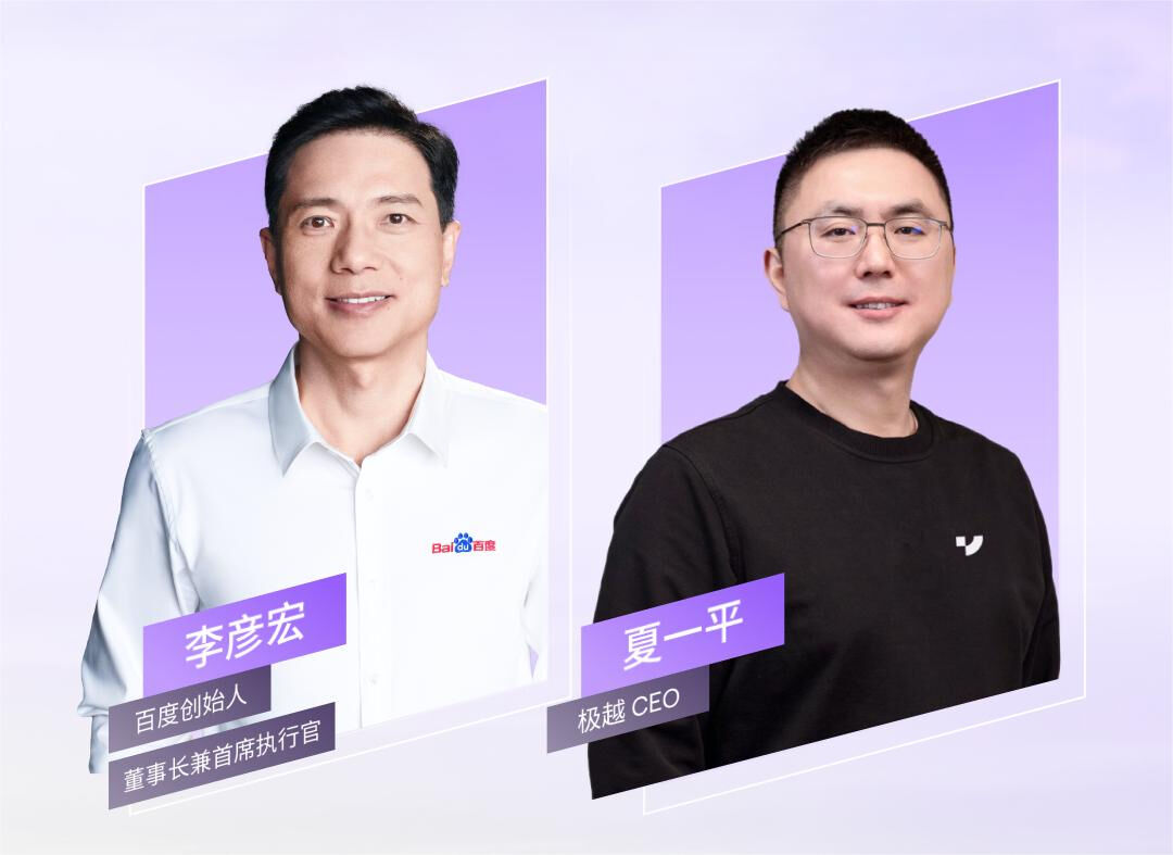 就在同一天,极越汽车CEO夏一平拉来百度CEO李彦宏,一起直播体验极越01。
