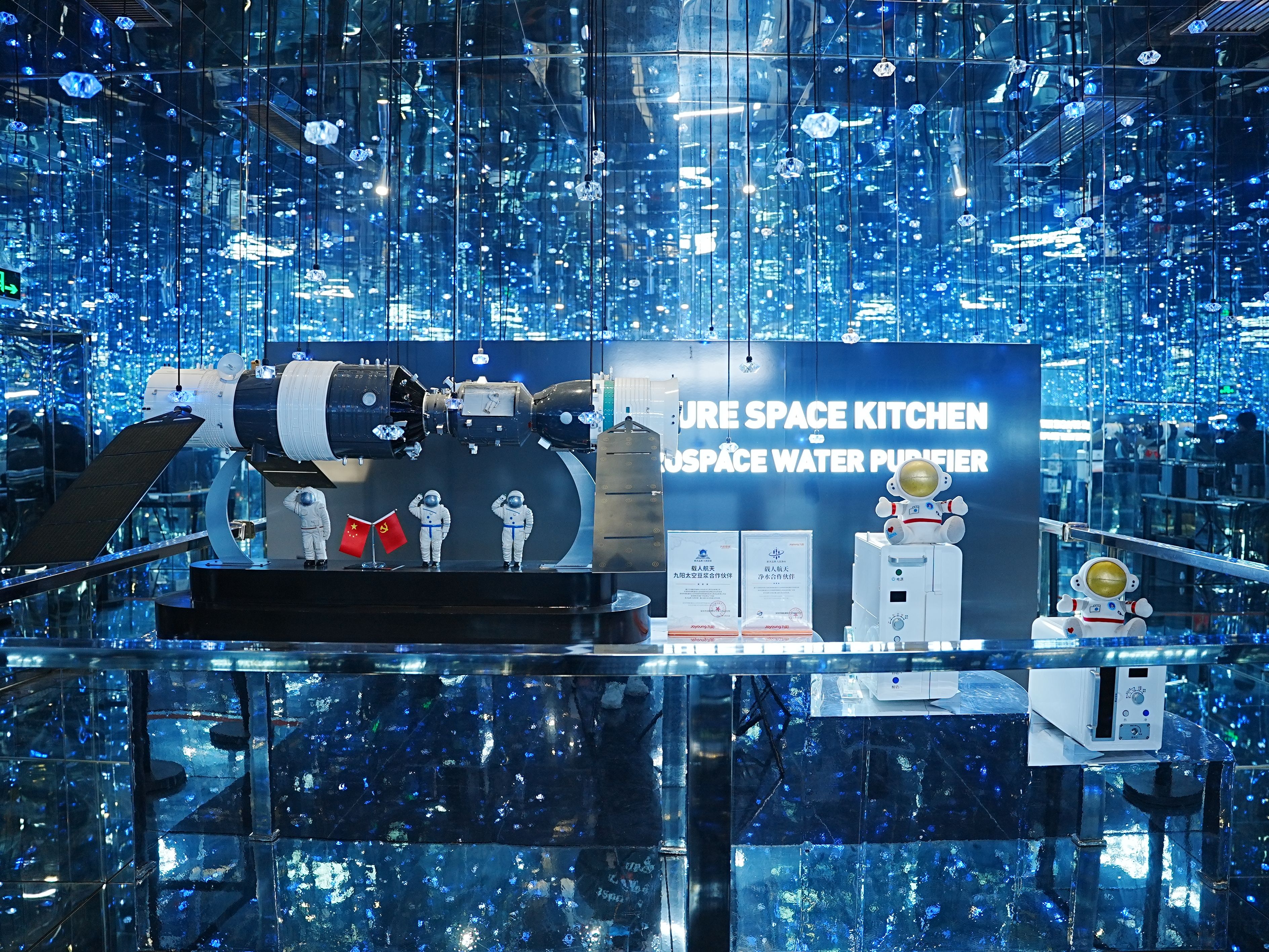 2014年,通过选拔,九阳成为载人航天太空厨房研制单位。2021年,九阳参与研制的太空厨房入驻中国空间站,为航天员带去了热风加热设备、饮水设备和太空豆浆,让航天员在40分钟内就能吃上一顿热腾腾的饭菜,在太空也能喝到45℃、适合人体饮用的温水,以及美味且不胀气的豆浆。